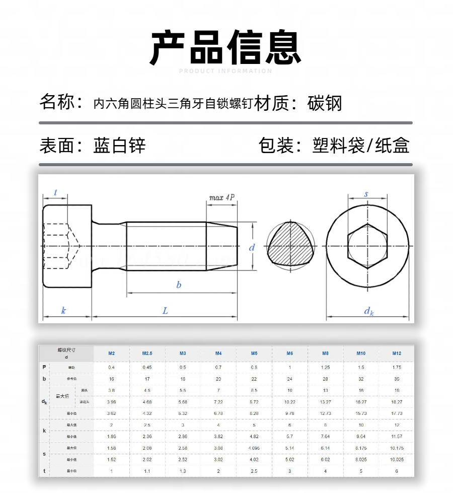 内六角圆柱头三角牙自锁螺钉介绍